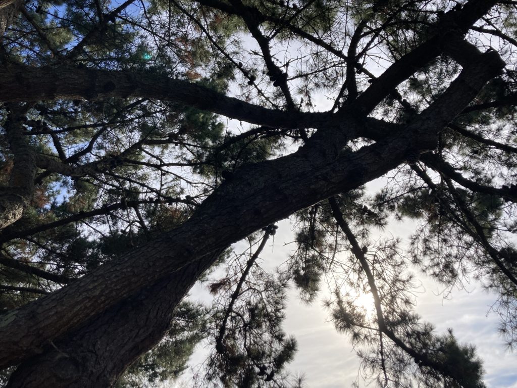 Der Pinienbaum schenkt ihr den Mut.