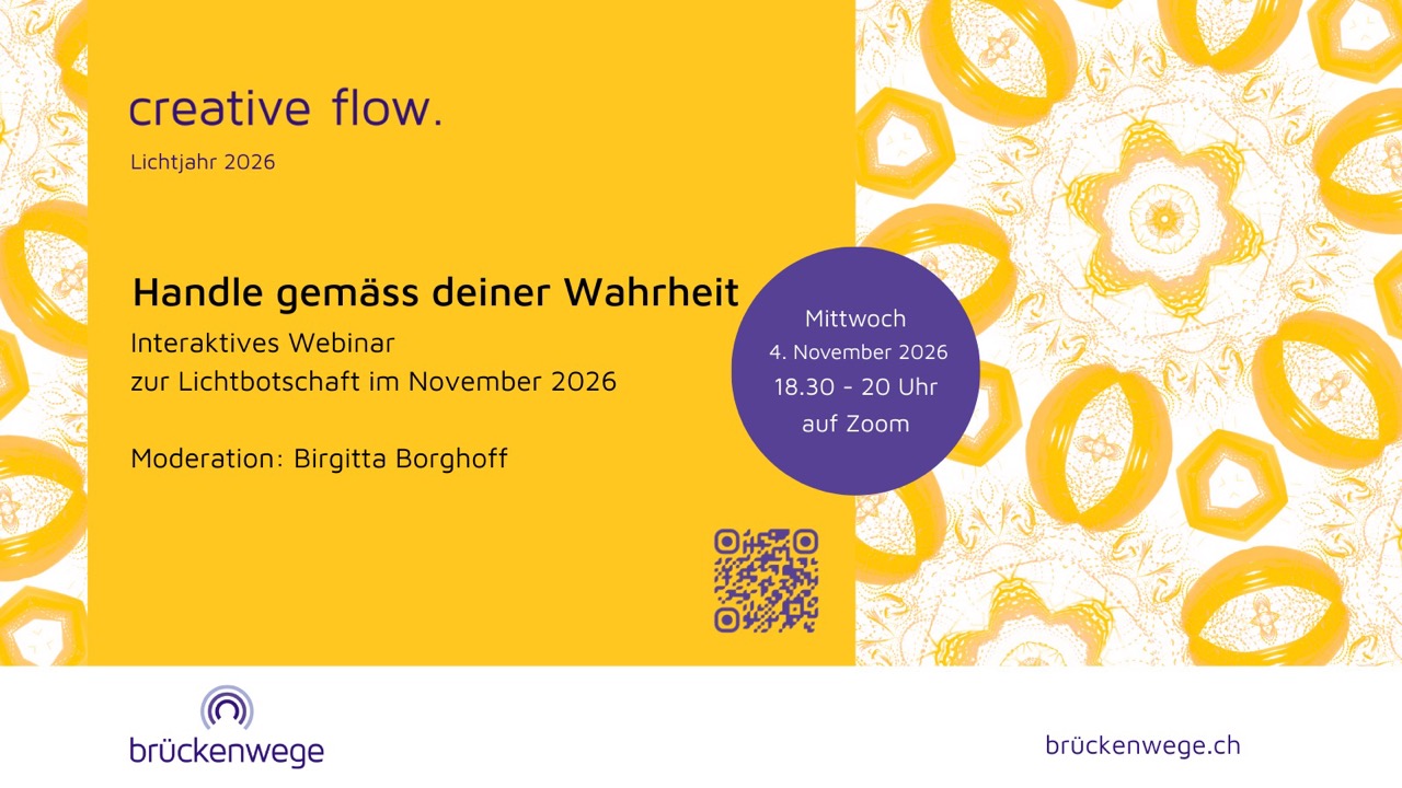 04.11.26, 18.30 – 20 Uhr «Handle gemäss deiner Wahrheit» (Interaktives Webinar zur Lichtbotschaft im November 2026)